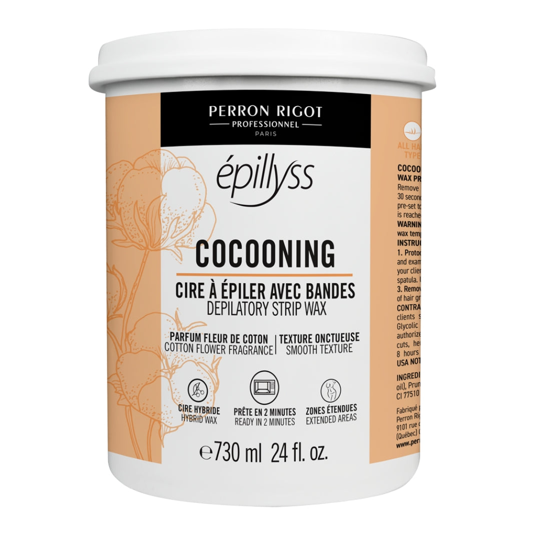 Experience the perfect balance of efficiency and comfort with Epillyss Cocooning Soft Wax. This creamy gel wax applies thinly and evenly at a low temperature, ensuring a smooth and gentle hair removal process. A touch of Titanium Dioxide helps to calm and soothe the skin, minimizing redness and irritation, making it ideal for clients with sensitive skin. Enriched with hydrating Cottonseed Oil and moisturizing Castor Seed Oil, this wax nourishes the skin while removing unwanted hair. Its versatile formula works on all hair types and is suitable for waxing everything from brows to large areas like legs and arms. Economical and easy to use, it's a go-to for both seasoned professionals and those just starting out.